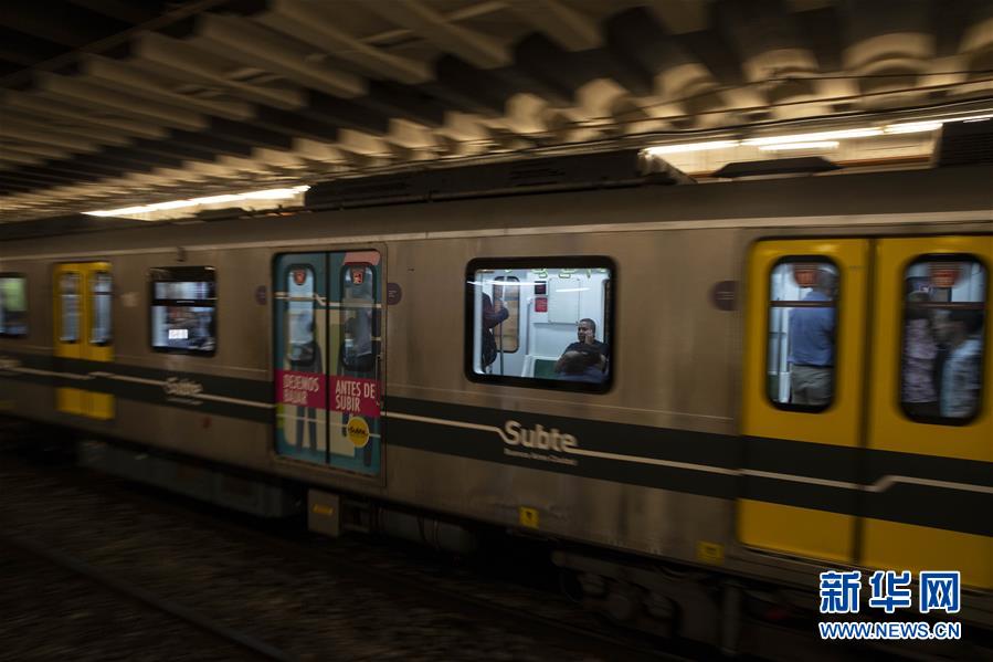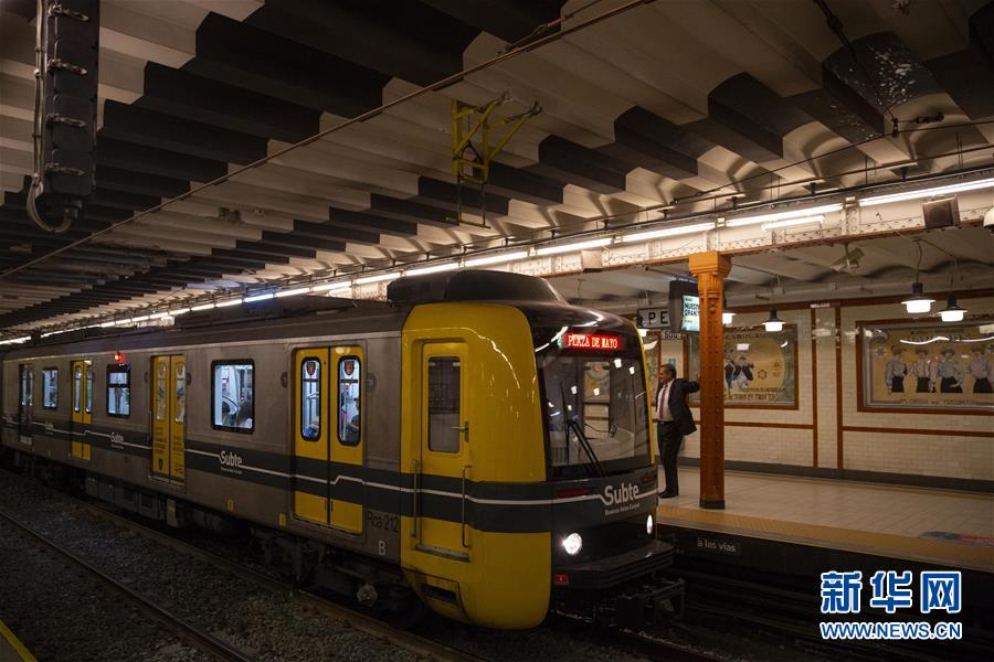 11月28日,在阿根廷布宜诺斯艾利斯地铁A线利马站,一辆中国制造的地铁列车出站。