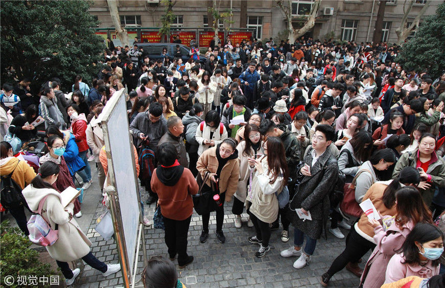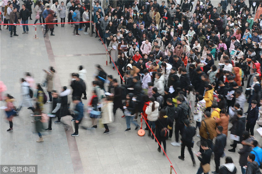 2018年12月2日,湖北武汉一公务员考点,密密麻麻的考生进向考场。当日,2019年度中央机关及其直属机构公务员招考笔试开考。楚林/视觉中国