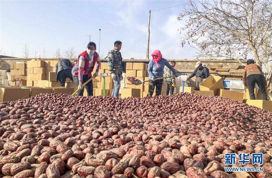 拜什托格拉克乡伊斯勒克墩村村民将晾晒好的红枣装箱(11月29日摄)。 新华社记者 关俏俏 摄