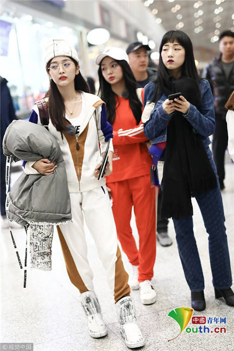 2018年12月3日,北京,“火箭少女101”全体成员现身机场前往国外录制团总综。其中孟美岐戴着墨镜,一身全黑运动装扮,大步流星气场超强,杨芸晴、yamy、杨超越等成员紧随其后,大家还一起在机场玩起自拍,好不欢乐。