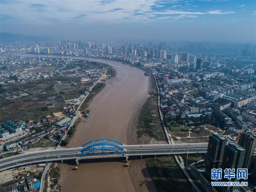 空中俯瞰龙港大桥(12月3日无人机拍摄)。
