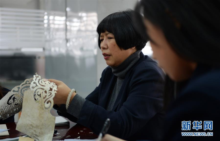 12月3日,张琳在哈尔滨轻工业学校讲授鱼皮画制作技艺。国家级非物质文化遗产赫哲族鱼皮制作技艺是我国赫哲族传统手工艺术。作为这项技艺的黑龙江省级传承人,十余年来,张琳一直从事鱼皮画的研究和创作,并通过做推广、开讲座、办活动,让更多年轻人了解并喜欢上这一传统手工艺,将这项濒临失传的艺术更好地传承下去。新华社记者 王凯 摄