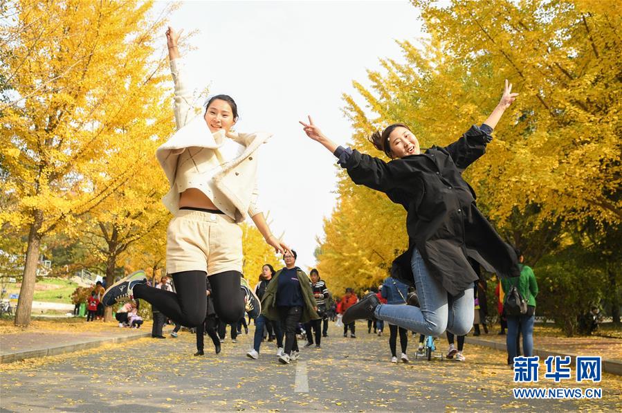 近日,沈阳农业大学内的银杏树进入最佳观赏期,长达一千余米的金色“银杏路”吸引了许多市民前去游览,拍照。 新华社记者龙雷摄