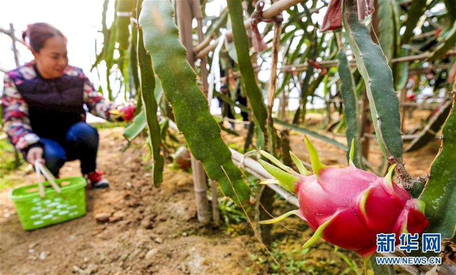 12月3日,一名北京游客在大厂回族自治县一家农业园采摘火龙果。