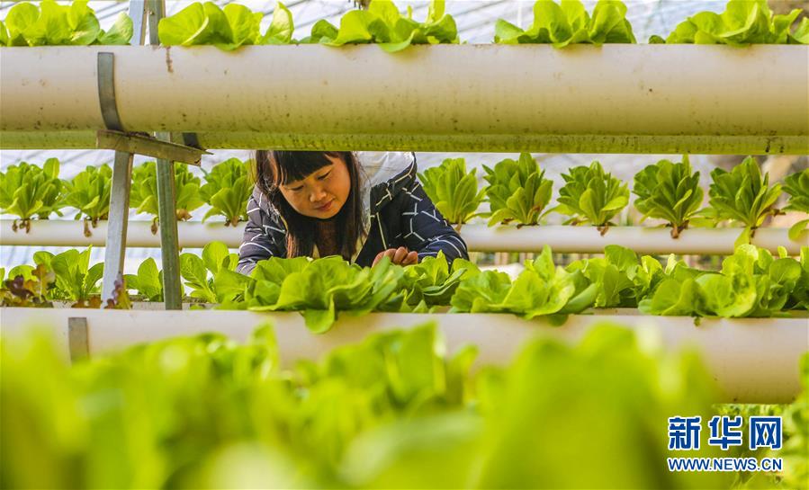 12月3日,工作人员在大厂回族自治县一家农业园打理无土栽培的蔬菜。