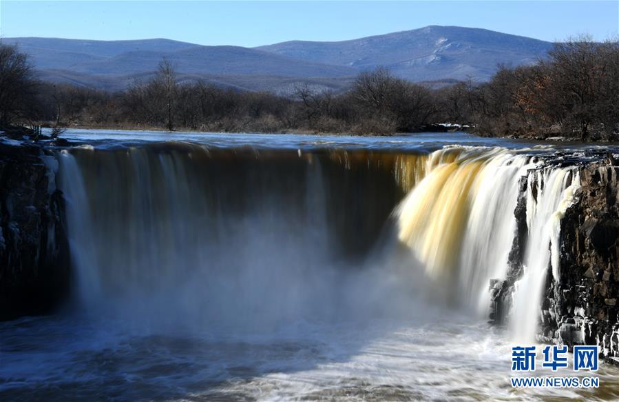 吊水楼瀑布的冬季飞瀑奇观(12月5日摄)。 受上游来水量大和近期气温偏高等因素影响,位于黑龙江东南部的火山堰塞湖——镜泊湖的吊水楼瀑布水量充沛,展现出飞流直下、水雾升腾的冬季奇观,引来许多游人观赏。 新华社记者王建威摄