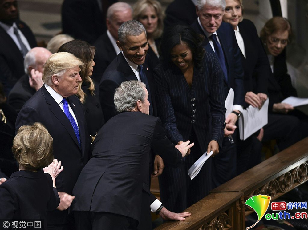 老布什国葬现“轻松”小插曲 小布什又给米歇尔“发糖”了!