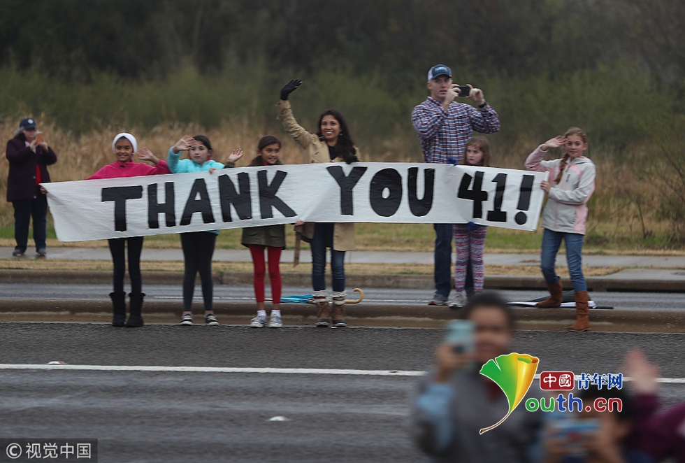 当地时间2018年12月6日,美国德州,美国前总统老布什将落葬德州农机大学布什总统图书馆和博物馆后面的布什家族墓地,与他半年前去世的妻子芭芭拉以及早夭的女儿萝宾葬在一起。当天,一辆葬礼专列将载着老布什的棺椁及其亲朋,从休斯敦郊区开往老布什的最后安葬之地、德州农机大学。这列火车的第六节车厢侧面是透明的,人们可以在铁轨旁看到老布什盖着国旗的灵枢。图片作者:Joe Raedle/视觉中国