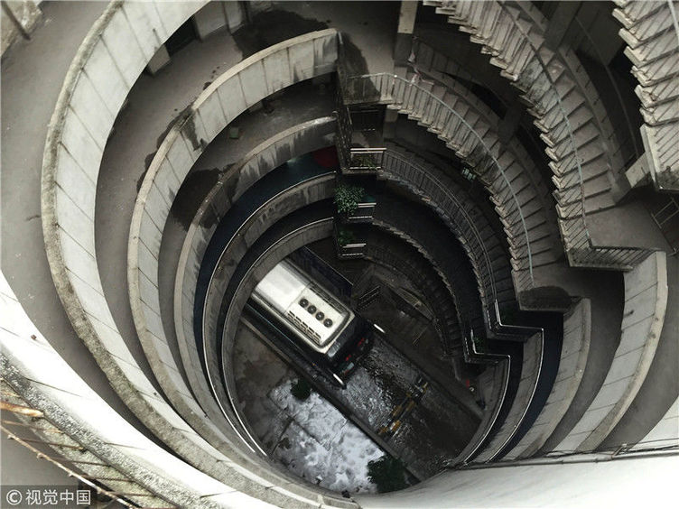 重庆洋人街景区内的穿楼观光索道吸引不少游客体验。据悉,跨度长1000米的观光索道将随着洋人街的拆迁而搬离。中新社记者陈超 摄 2017年9月27日,重庆,南岸区某小区的“螺旋”停车场,从公路到车库要下5层楼,司机需要转无数个360度圈。图片来源:视觉中国