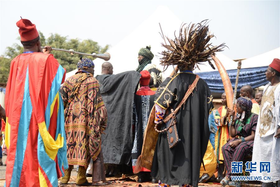 巴蒙王国是喀麦隆西部一支传统部族,拥有600多年历史。古恩节是巴蒙王国最重要的传统节日,其间会举行国王评议的古老仪式。从近代开始,古恩节每两年举行一次,今年于12月7日至9日举行。12月8日,国王接受子民的评议,该评议由古恩社团作为发言人代为完成。古恩社团代表用巴蒙语陈述国王过去两年来的功绩与失误,随后法官宣布,国王可保留王位,但须记过3次。此外,本届古恩节组织不力,致使王国圣物遭人践踏,因此罚国王交出10头山羊充公。国王欣然接受了判决。 这是12月8日在喀麦隆丰班拍摄的国王评议仪式现场。 新华社记者 乔本孝 摄