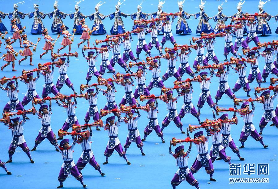 12月10日,广西壮族自治区成立60周年庆祝大会在广西体育中心隆重举行。这是庆祝大会上的群众文艺表演。 新华社记者 申宏 摄
