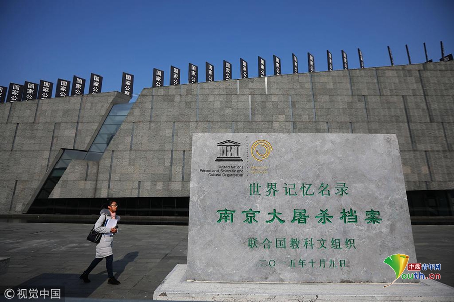 2018年12月12日,工作人员从侵华日军南京大屠杀遇难同胞纪念馆内的“世界记忆名录-南京大屠杀档案”纪念碑前经过。12月13日,南京大屠杀死难者国家公祭仪式将在侵华日军南京大屠杀遇难同胞纪念馆内举行。图片作者:泱波