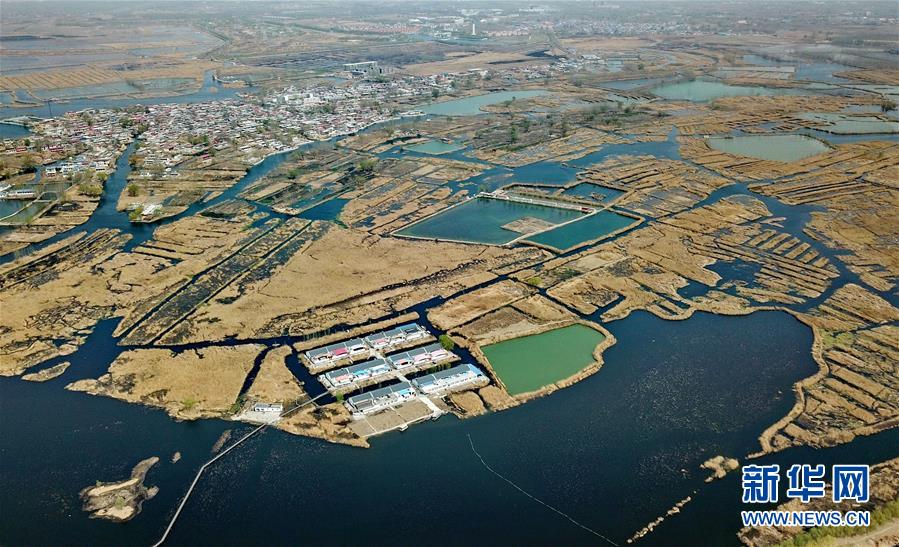 这是无人机拍摄的雄安新区白洋淀内的村庄(3月29日摄)。 新华社记者 杨世尧摄