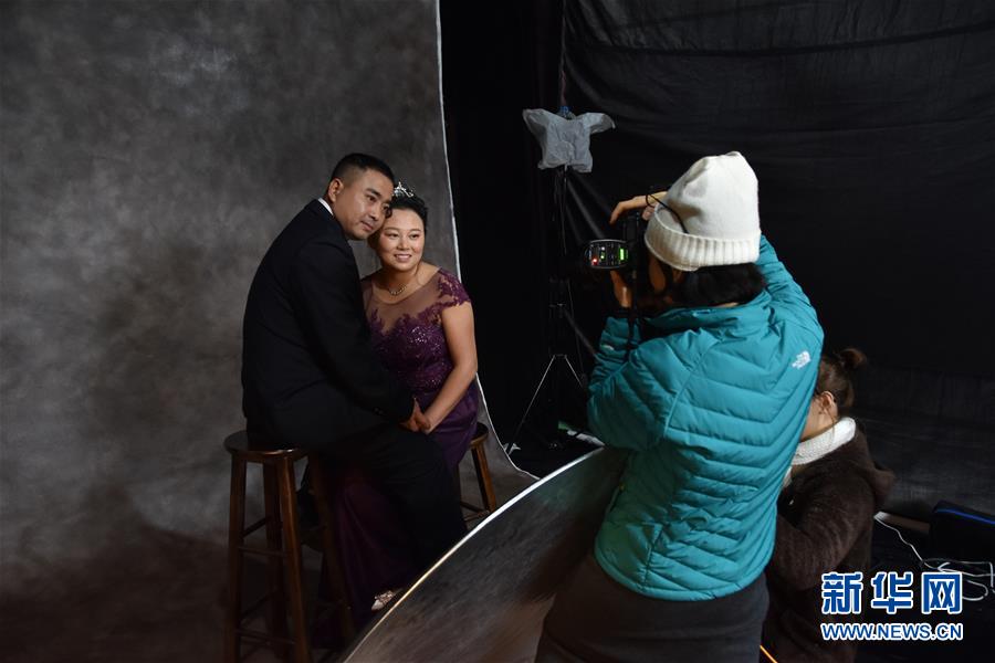 摄影师罗娴为农民工夫妻拍摄婚纱照(12月10日摄)。 新华社记者 白田田 摄