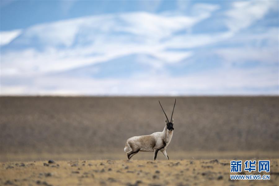 一只藏羚羊在西藏羌塘国家级自然保护区的原野上活动(12月14日摄)。 新华社记者 张汝锋 摄