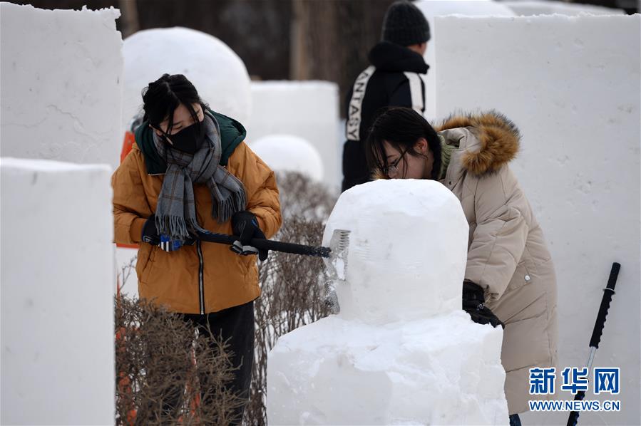 探秘哈尔滨太阳岛雪博会:雪雕师精雕细刻建造忙