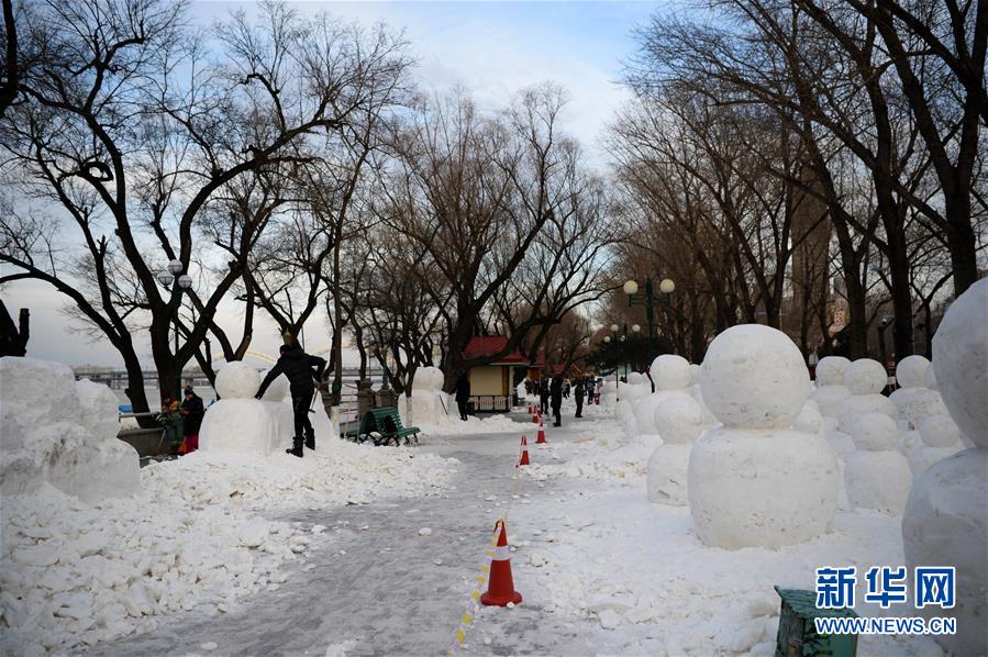 国内最大的雪雕盛会太阳岛雪博会正在紧锣密鼓建设中,雪雕师正在精雕细刻打磨中。