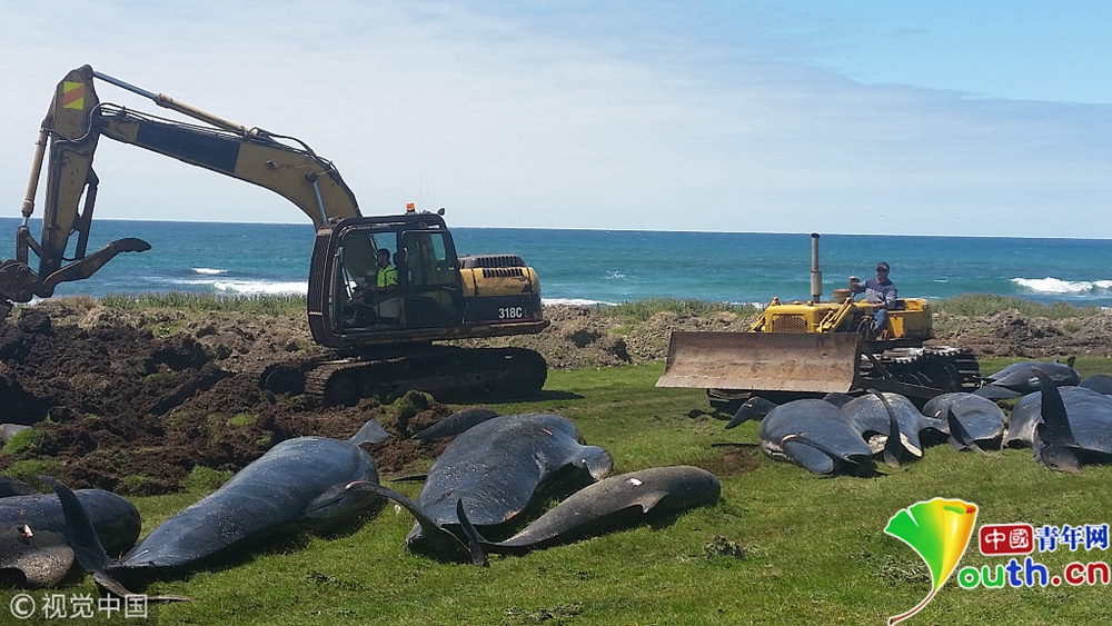 多头巨鲸新西兰海岸搁浅死亡 沿海海水染成红色