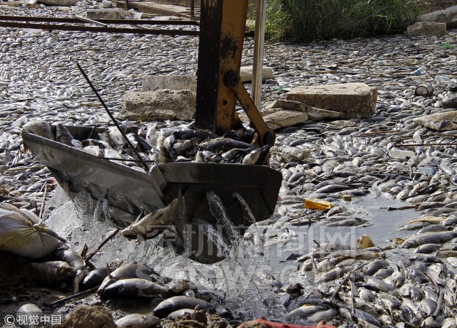 伊拉克河流一夜之间漂浮数万死鱼 密密麻麻挤满河道
