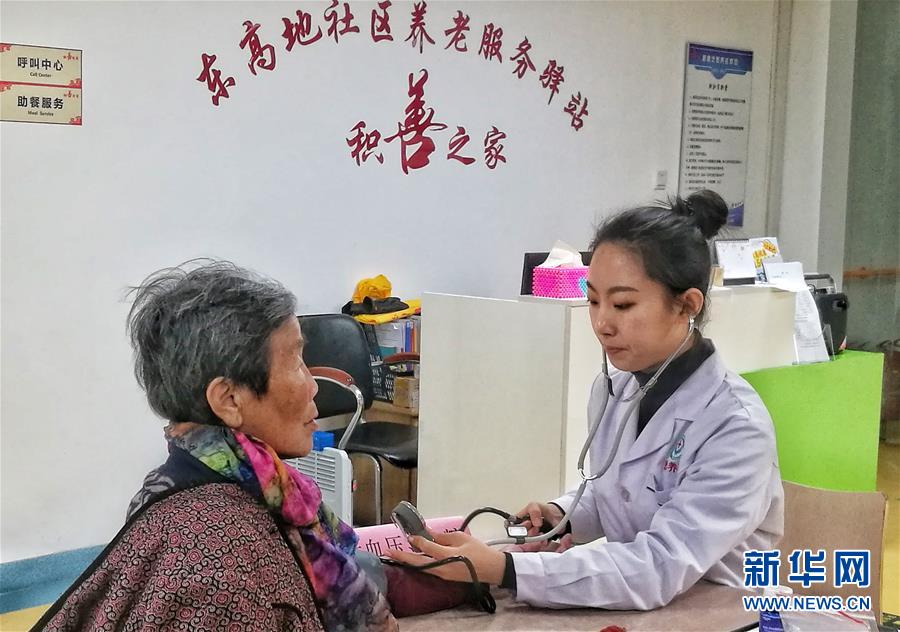 12月18日,丰台区东高地街道养老服务驿站聘请的医务人员为社区老人进行免费检查。 新华社记者 李欣 摄