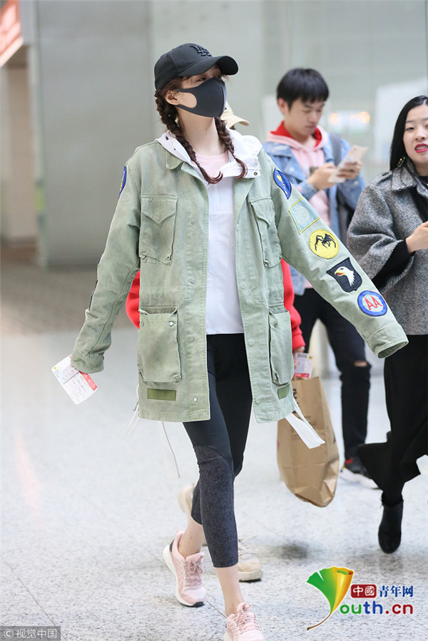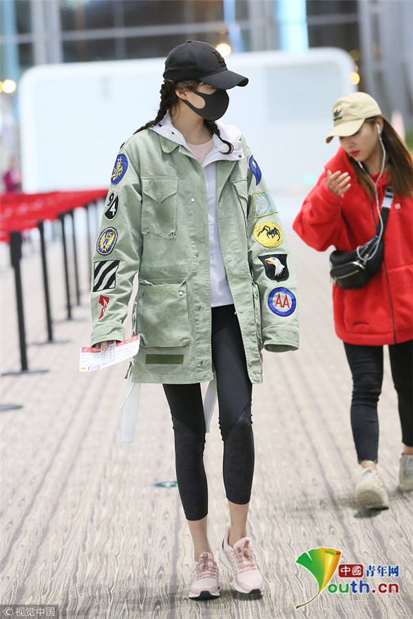 2018年12月18日讯,广东省广州市,近日,关晓彤现身广州白云机场,穿的还是那件多次在机场穿过的工装外套,看来关晓彤很喜欢这件男友风外套,当天其一路与助理热聊不断,不时张开双臂似随时“起飞”!