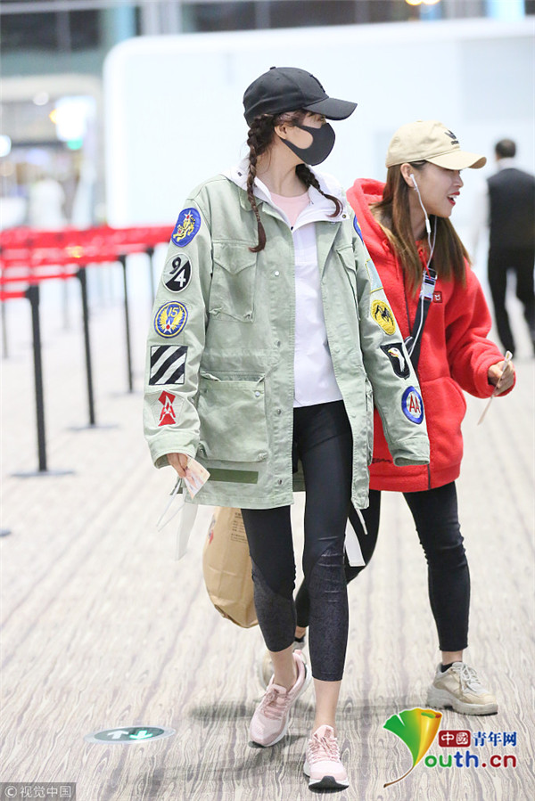 关晓彤男友风外套“小鸟腿”抢眼 东张西望变好奇宝宝