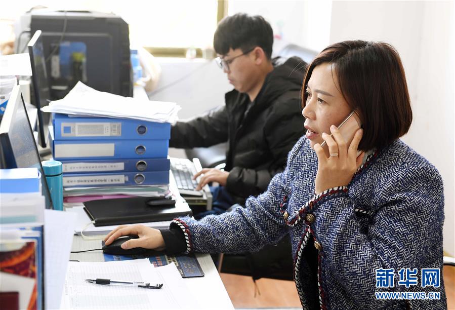 12月17日,陈应兰(前)在接听帮扶户的情况反映。 新华社记者 杨宗友 摄