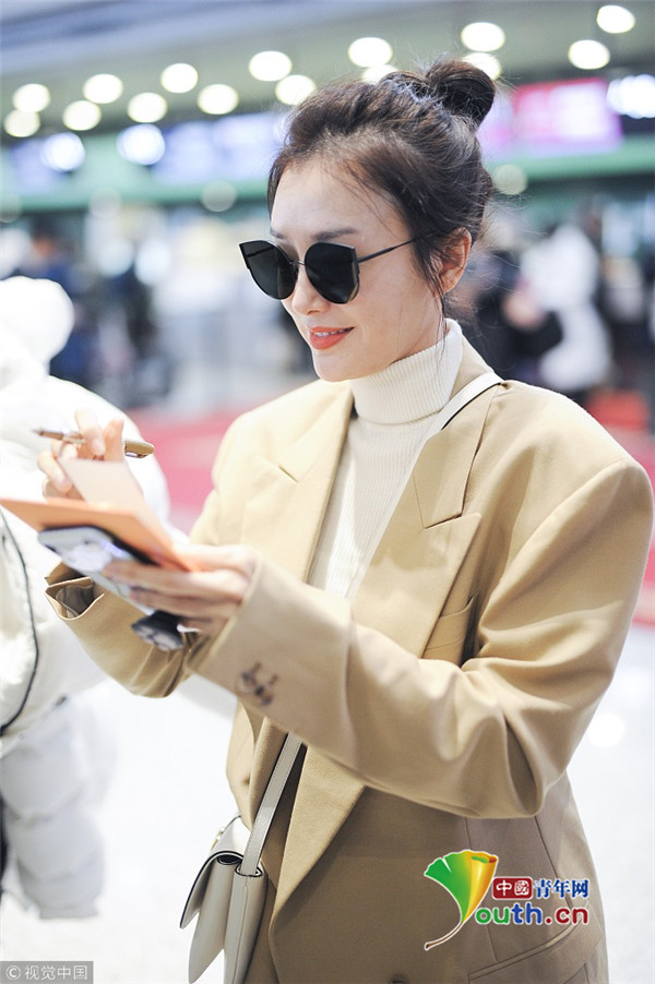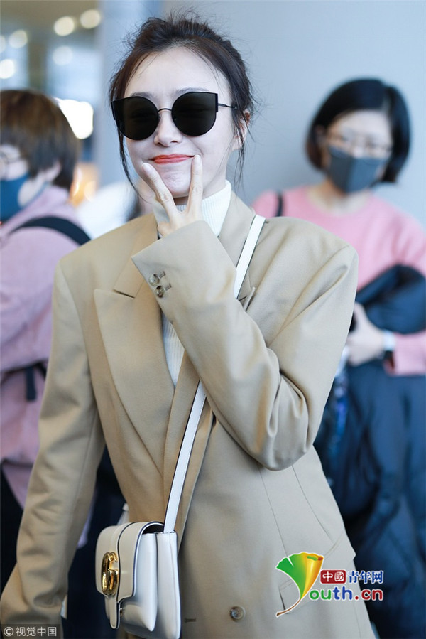 2018年12月11日,上海,秦岚现身机场。她穿浅西装配高领毛衣温暖又时尚,梳丸子头清新减龄,机场获粉丝送告白信,娇羞嘟嘴卖萌少女范十足。