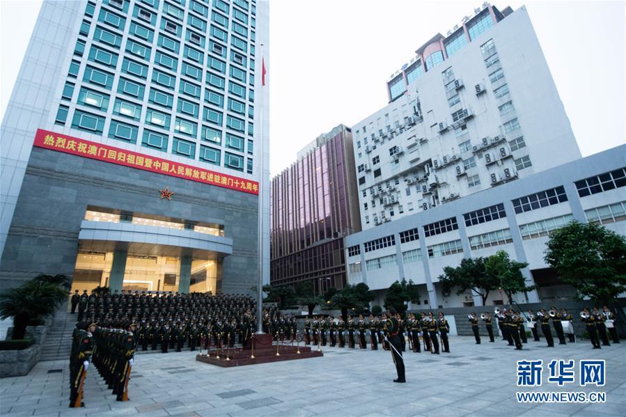 12月20日,中国人民解放军驻澳门部队在澳门新口岸营区举行升国旗仪式,庆祝澳门回归祖国暨中国人民解放军进驻澳门19周年。 新华社记者张金加摄