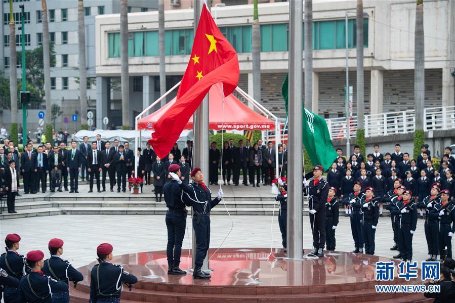 12月20日,澳门特别行政区政府在澳门金莲花广场举行升旗仪式,庆祝澳门回归祖国19周年。 新华社记者 张金加 摄