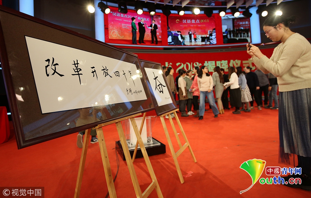 12月20日,国家语言资源监测与研究中心、商务印书馆、央视新闻等单位联合举办的“汉语盘点2018”揭晓仪式在北京举行。图片来源:视觉中国