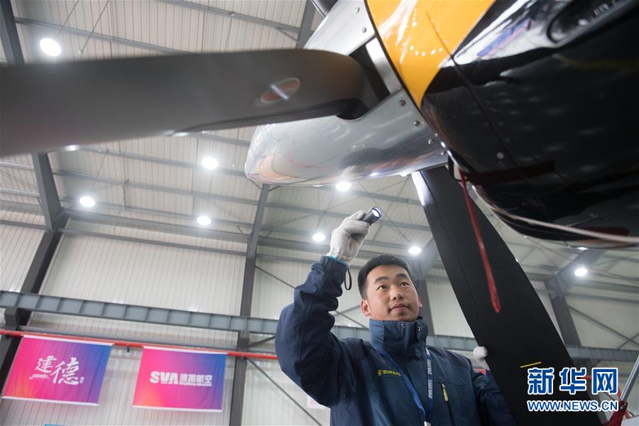 12月20日,在建德市航空小镇,工作人员对一架大棕熊100系列飞机进行日常维护。 当日,浙江省建德市航空小镇通航制造板块首架飞机下线交付。此次下线交付的大棕熊100系列Ⅱ飞机由美国Quest飞机制造公司出品,有望在通用航空领域发挥作用。建德市自2016年开始航空小镇创建,2017年被列入全国第二批特色小镇名单。 新华社记者翁忻旸摄