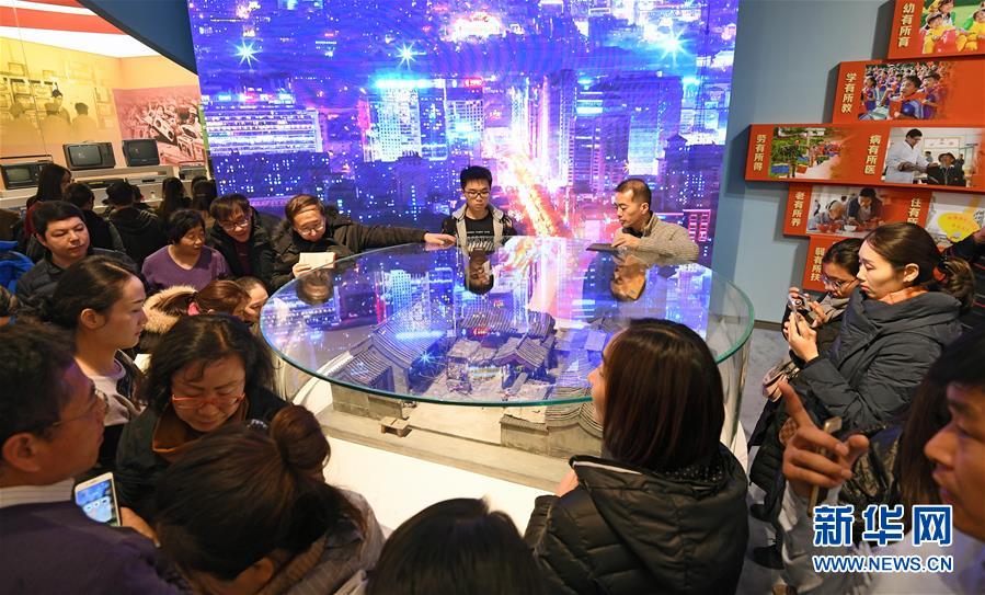 12月21日,观众在观看老北京四合院微缩模型。