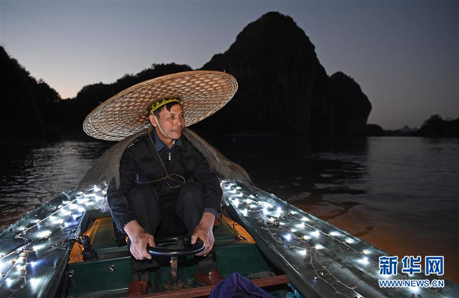 舒港发在龙虎山景区驾驶小船参与实景演出《寻梦龙虎山》(10月27日摄)。