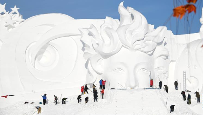 雪博会百米主塑露“芳容”