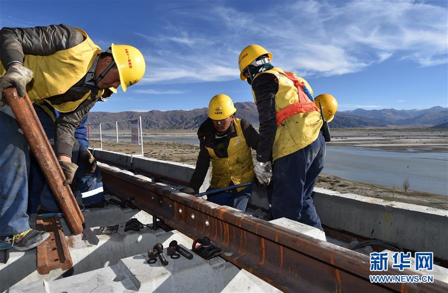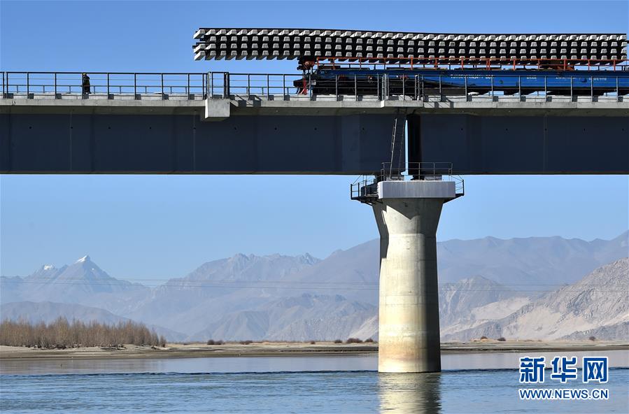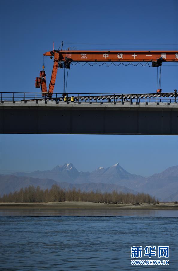 川藏铁路拉林段第一座跨雅鲁藏布江大桥铺轨
