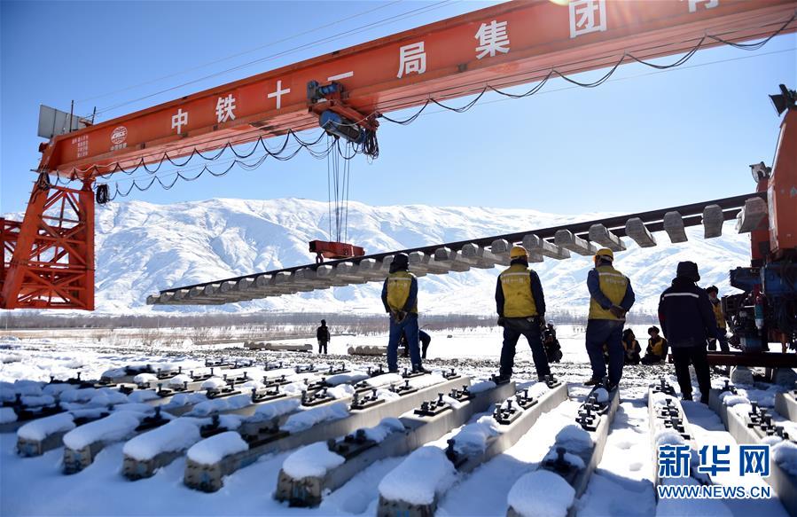 9月16日,中铁十一局三公司施工人员在川藏铁路拉林段铺设首组道岔。 当日,中铁十一局施工建设者在川藏铁路拉林段首个新建车站——贡嘎车站成功铺设首组道岔,为拉林铁路后续铺轨施工机械的通过创造了交通条件。 川藏铁路拉林段于2014年底开工建设,建设工期为7年,设计时速160公里,是西藏首条电气化铁路。 新华社记者 普布扎西 摄