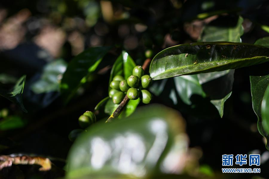 这是12月19日在哥斯达黎加阿拉胡埃拉省拍摄的生长中的咖啡果实。