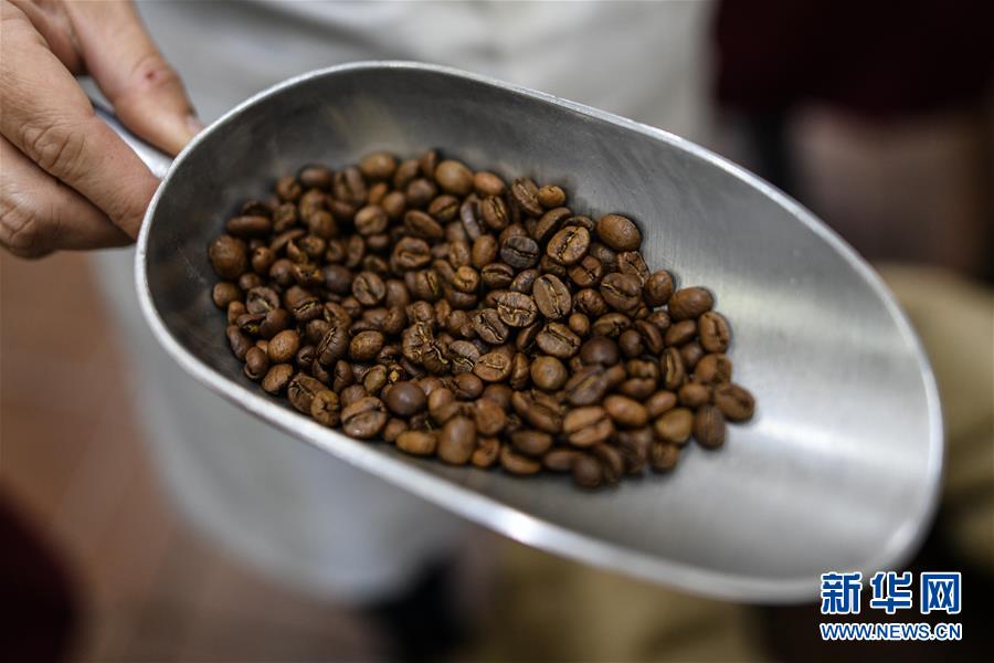 12月19日,在哥斯达黎加阿拉胡埃拉省的一个咖啡种植园,工作人员展示刚刚烘焙好的咖啡豆。 新华社记者 辛悦卫 摄