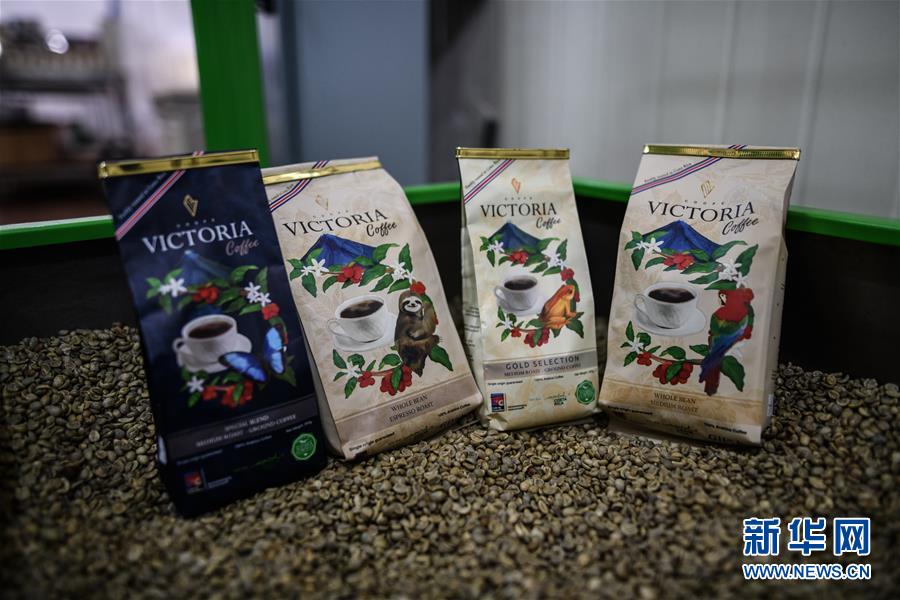 这是12月19日在哥斯达黎加阿拉胡埃拉省拍摄的准备出口中国的维多利亚牌精选咖啡。 新华社记者 辛悦卫 摄