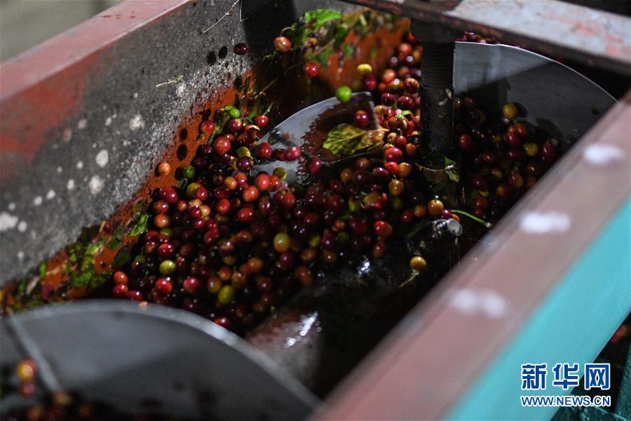 这是12月18日在哥斯达黎加阿拉胡埃拉省拍摄的正在脱壳的咖啡果实。 新华社记者 辛悦卫 摄