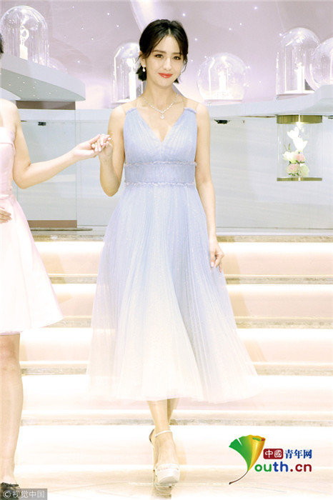 2018年12月24日,上海,佟丽娅出席活动,她身穿一袭淡蓝色薄纱裙宛若冰雪女王, 中分短发搭配可爱梨涡,女神气质中又带有一分干练和可爱,真是魅力百变!当天她在五大花美男的护驾下入场,宛如众星捧月!