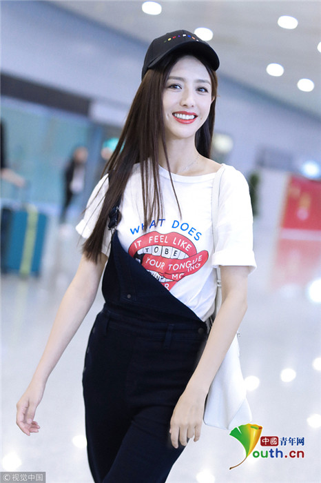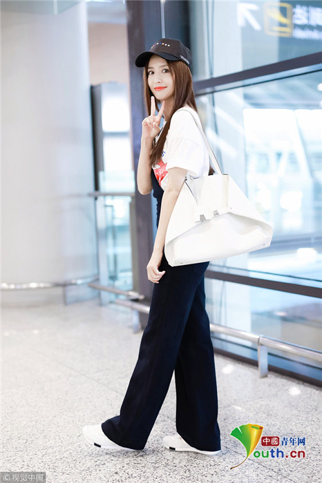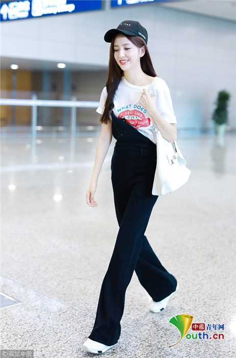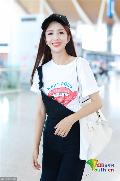 近日,佟丽娅现身机场,棒球帽下一头黑色长发飞扬,告别惊艳的短发造型重回长发女神的行列,当天她身穿白T搭配背带裤,满满青春活力,垫脚比剪刀手,小动作可爱炸!