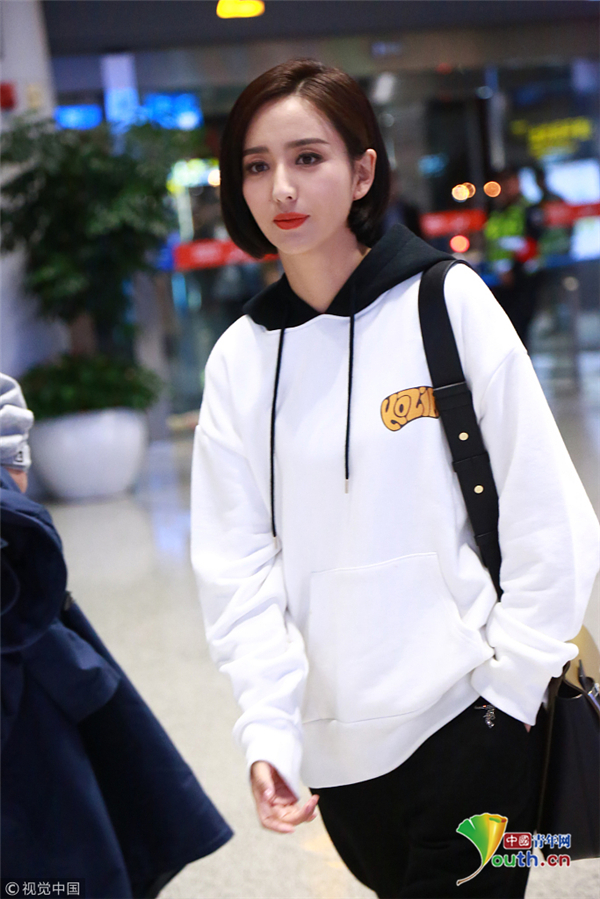 10月18日,湖南长沙, 佟丽娅录完《快乐大本营 》现身长沙机场,她梳利落短发穿连帽卫衣,笑容甜美气质佳。