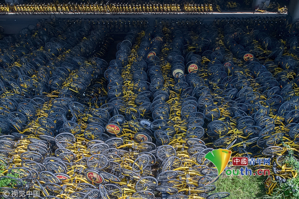 2018年8月24日,西安西咸新区。连霍高速桥下的ofo小黄车“坟场”。