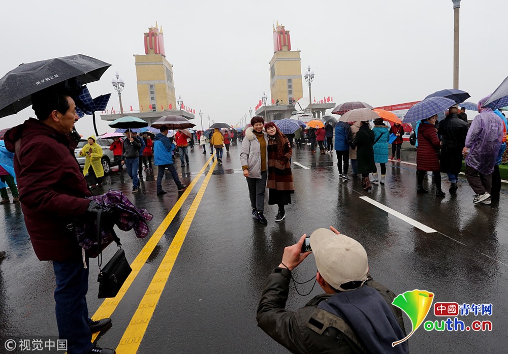 2018年12月26日,南京。南京长江大桥维修改造工程竣工通车在即,12月26日至28日三天向公众开放,12月26日,“市民开放日”首日,早晨九时许,虽然下着雨,但记者在南京长江大桥入口和桥上看到,如织的市民打着伞来到大桥,整个桥上全是撑伞观看的市民,足有万人,十分壮观。