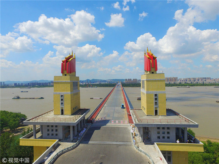 2018年9月9日,经过一年多的封闭维修,南京长江大桥初露新颜,在蓝天白云的映衬下显得格外壮美。