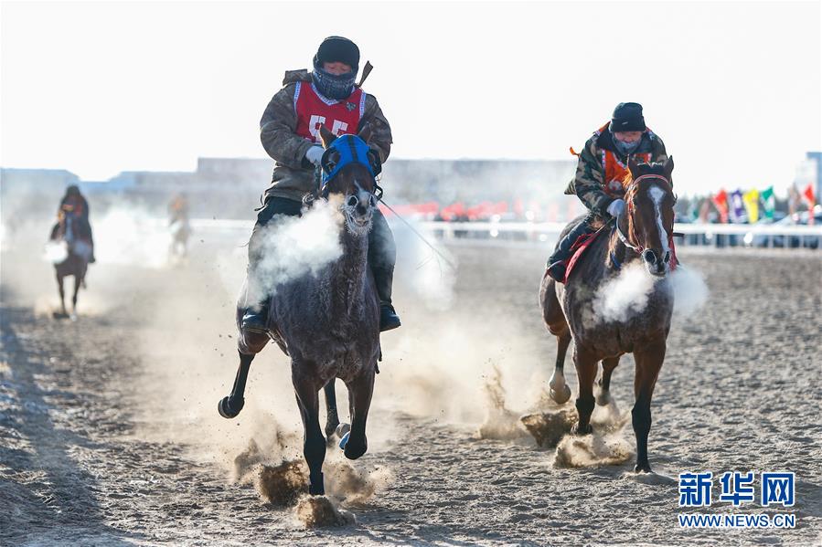 12月26日,牧民在进行赛马。 当日,内蒙古冰雪那达慕系列活动在呼伦贝尔市鄂温克旗继续进行,牧民欢聚一堂,参加各种赛事和趣味项目。 新华社记者 虞东升 摄