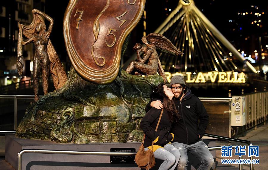 12月23日,在安道尔首都安道尔城,一对情侣坐在街头的一处雕塑前。新华社记者郭求达摄