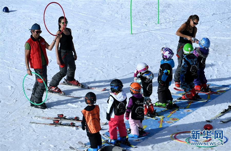 12月25日,在安道尔拉马萨纳,孩子们在滑雪场学习滑雪。 新华社记者郭求达摄